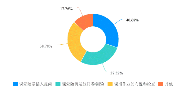 对学生认为更有效的检验学习效果的方式进行调查,数据显示,学生认为在课堂中插入问题测试、课堂随机发放问卷/测验、布置课后作业的方式都能够一定程度上检测学习效果。因此,教师可将多种方式结合,帮助学生巩固学习效果。