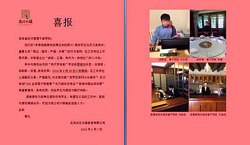 近日,北京古北水镇旅游有限公司给我院发来喜报,内容如下: