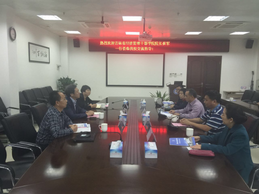 21日下午,崔军院长一行与学校校长吴建新、经济管理学院院长渠晓伟、教务处处长、创业教育学院院长、就业科科长进行了座谈交流。吴校长重点介绍了学校的“一镇一品一专业”“政校企合作”的办学特色和办学成果,双方就人才培养模式的创新、绩效工资的分配、创新创业教育改革、政校企深度合作、招生培养就业体制的联动等进行了深入的交流和探讨。