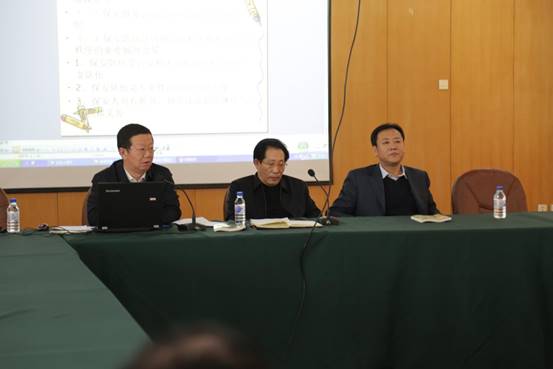 长春市公安局副局长徐新民(左一)做《校园安全专题报告》,院长崔军(右一)、副院长费立发(中)参加报告会