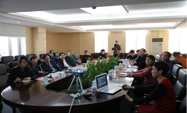 与会人员听取美方的介绍,学院崔军院长和胡伯龙副院长交换意见