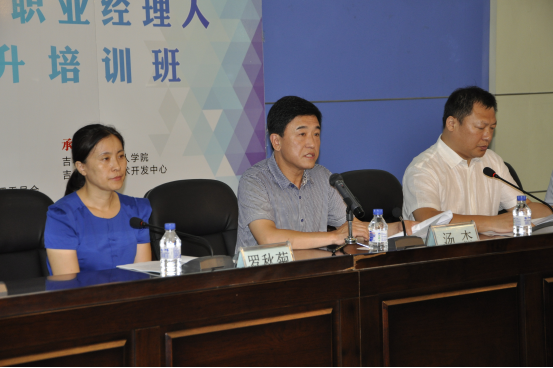 汤杰副院长在致辞中表示,举办此次培训班的目的是为落实《吉林省企业经营管理人才队伍建设中长期规划(2010—2020年)》和《吉林省2014—2017年干部教育培训规划》的总体要求,全面提升我省职业经理人整体素质和创新创业能力,培养现代化、专业化、市场化、创新性、实用性企业经营管理人才。帮助经理人解决企业经营管理中的实际问题,发挥企业对经济发展的推动作用,为吉林新一轮振兴发展做出新的贡献。