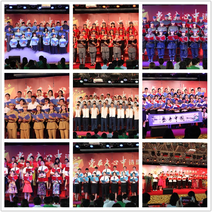 诗歌朗诵会以我党95周年奋斗历程为主线,分为红船起航、长征铸魂、抗战烽火、开国大典、黄河咏叹、改革开放、继往开来、人民公仆、中国梦想、党旗颂歌等十个主题。