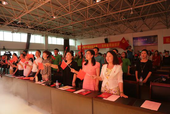 最后,党委书记赵世恩带领与会的全体党员面向党旗庄严宣誓,由衷地表达了“为共产主义奋斗终身,随时准备为党和人民牺牲一切,永不叛党”的崇高理想和坚定信念。诗歌朗诵会在一曲振奋人心、催人向上的《没有共产党就没有新中国》中落下帷幕。党旗、国旗、院旗交相辉映,伴随着歌声在会场久久飘扬。