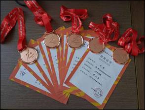 在足球比赛中,我院组建了第一支女子足球队,经过一个月的集训,获得了团体第三名的成绩,斩获铜牌16枚。