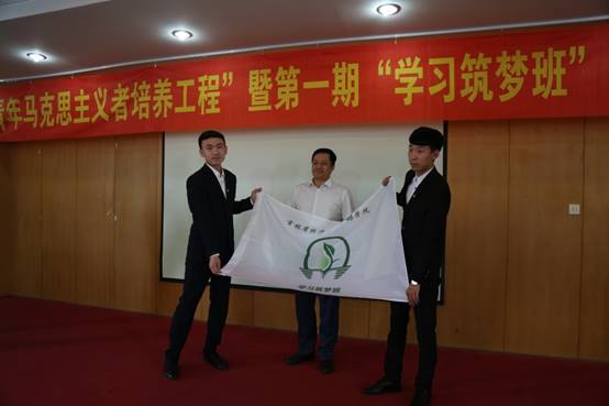学院第一期“学习筑梦班”班主任郑明月同志宣读《学院大学生学习筑梦行动实施方案》,学院党委副书记魏岩同志为第一期“学习筑梦班”授旗。应文同学代表“学习筑梦班”学员发言,他表示在筑梦班学习期间,一定会与广大学员一起努力学习、遵守班规,发挥模范带头作用,积极参加各项活动,努力成为中国特色社会主义事业的合格建设者和可靠的接班人。