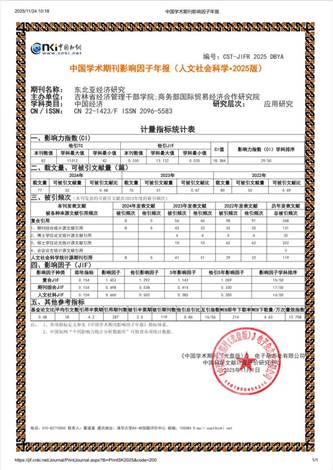 近日,《中国学术期刊影响因子年报》(人文社会科学·2025)发布,《东北亚经济研究》复合影响因子(JIF)为1.453,较上年增长15%,在同类期刊中领先,再创历史新高。这一里程碑式的突破,标志着我院期刊的学术质量、传播广度与行业影响力迈上了全新台阶,是全体编委、作者、审稿专家和编辑部同仁共同努力的成果。