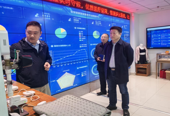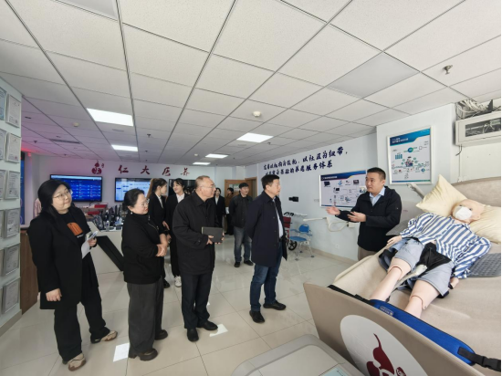 副总经理曲柯宇陪同领导、引领师生们依次参观医养中心的各个功能场地、职能、业务部门,全方位感受医养结合模式的专业与温情。配备核磁、CT设备的二级医院区域,以专业的医疗保障为长者健康筑牢坚实防线;康复中心内,护工们耐心搀扶老人进行康复训练,传递着不放弃的坚守。智慧小屋依托智能设备与数据大屏,实现老人安全状态实时监测,展现科技养老的便捷。活动中心温馨舒适,老人们的笑脸与日常场景,尽显养老服务的温暖与烟火气。