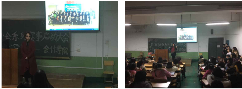 为了突出会计学院的专业特色,进一步强化职业技能与服务技能,提高学生学习专业技能和挖掘自身潜能的热情,激发学生对专业实践技能和社会问题解决的兴趣,培养其动手能力和创新思维能力,树立团队合作意识,在会计学院领导的支持下,通过会“技”协会的第二课堂活动平台,会计学院特举办了会“技”协会首届DI创新思维大赛和第三届会计专业技能大赛。2015年11月27日晚在和平校区,李昕院长与林冬梅副院长为此次比赛特召开了全体会员的“会“技”协会系列赛事启动大会”进行动员。