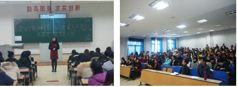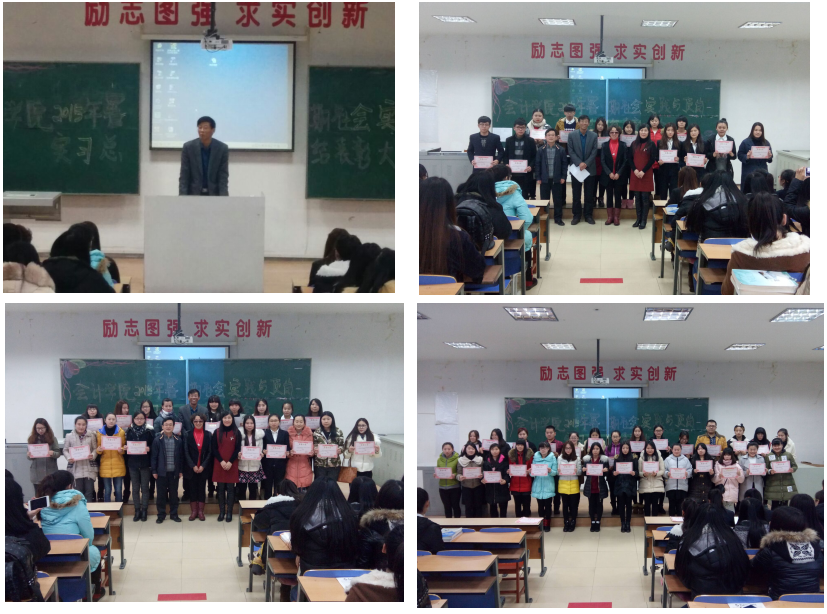 2015年12月29日中午12:00在院A205召开了会计学院2015年暑期社会实践与顶岗实习活动总结表彰大会,会计学院领导班子和获奖学生及2013级、2014级部分学生代表参加了本次大会,大会由林冬梅副院长主持。本次大会第一项分别由优秀作品学生代表2013级的荣爽、孙智慧、周美琪和2014级的毕馨日、贾乐、孙书博做了汇报。荣爽同学提醒同学们要有吃苦的决心、平和的心态和不耻下问的精神;多看、多观察、多听、少讲;经常做工作总结,坚持写工作日记。具有良好的专业素质、职业操守及敬业态度以及良好的人际交往能力。孙智慧同学提醒同学们打好基础,要将理论与实践有机结合,工作中要有足够的耐心和细心,切忌粗心大意、心浮气躁,要保持一颗平常心。周美琪做为在修正药业集团和吉林万通药业集团顶岗实习优秀准员工代表来到学校,与同学们交流了她入职后的工作与学习经历,她告诫同学们,面对选择不要为难与害怕,多与人交流,多向别人学习,珍惜学校提供的实习机会,走出去,大胆表现自己,你一定会成功!毕馨日同学今年的暑期安排的活动是最丰富的,分别是高新荷园、恒大御景、凯旋门、万达文华公馆等房地产冷餐礼仪活动;奔跑吧兄弟“安慕希”路演活动销售+大型游戏;联通移动公司迎新生足球宝贝巡场举牌;东风日产、楼兰新会发布会、日产车预售车模;东北亚博览会参展商“韩国、日本馆”销售;新星宇房产七夕活动扫码派发礼品负责人。每次活动她都总结出自己的感悟,她告诫同学们,少抱怨,学会接受;抓住机会而不是等待机会;一个人人品有问题,即使步入社会,他也是失败的;力的作用是相互的,做好自己该做的;不以自我为中心,凡事贵在坚持。贾乐同学结合自己做服务员的打工经历,朴实真诚的与同学们分享自己打工的心路历程,她告诫同学们,要懂得感激,学会坚持,不要怕苦怕累,多做事多磨练,珍视友情,克服挫折,逐步成长,沙粒也会磨练成珍珠。孙书博同学分别从职业认知、自我认知、职业决策、目标设定、规划与实施计划、职业生涯评估和备选方案七个方面讲解他的职业生涯规划设计,设定自己的就业、择业、创业路径,设定自己的近期目标,并告诫同学们不要怕失败,要思考未来、规划职业、多角度认识自我,要知道自己想做什么,适合做什么,为自己设计一份个性职业生涯规划书。六位同学的发言,引来同学们的阵阵掌声,也引发了同学们的思考。最后,付杰书记宣读本次活动奖励决定,并告诫同学们要珍惜学校学习时间,珍惜每一次社会实践与顶岗实习的机会,好好锻炼自己,注意安全,学会保护自己。对于学生经过社会实践与顶岗实习懂得感恩给予肯定。