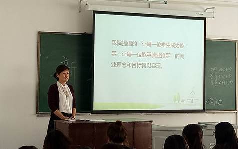 首先,刘春娟院长详细介绍了学院专业设置、师资队伍建设、实训基地条件、毕业生就业现状等同学及家长关心的问题,并针对“如何珍惜和度过美好的大学生活”向新生们提出了要求,告诫同学们“知识是学出来的,能力是练出来的,要干的好也要经得起煎熬”,教导学生要做一个让父母、让学校、让社会放心的人。刘院长也对同学们寄予厚望,殷切的期望大家能够在三年的大学时光里充分展示自我,把握机遇,夯实专业基础,团结拼搏,崇德尚能,做一个对社会和国家有用的栋梁之才!