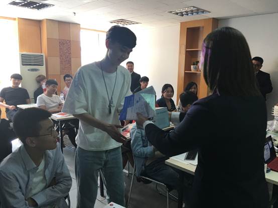 学生在阵阵掌声下描述了他们心中的“留言板”,学生以这种形式收获到了思想碰撞的快乐,并领会了他们所扮演的项目角色的内涵。