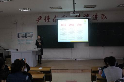 在宣讲会上,创业大使于迪老师做了题为“立志以定青春,创业为圆梦想”的精彩演讲,她的演讲主要围绕“我们这个时代为什么需要创业?你具备潜在的创业特质吗?为创业你做好了准备吗?”三方面的内容开展,激励同学们做好人生选择和准备,鼓励同学们积极参与到大赛中来,“走进发展必然性的视野,感受正逢时代潮头的高校双创” 。