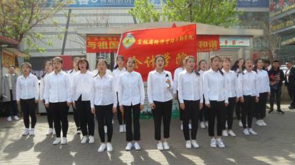 为了在广大青年团员中弘扬爱国主义物质文明、精神文明、政治文明和和谐社会建设的精神,在校勤奋学习,在岗努力工作。4月28日上午9:00会计学院师生代表参加了在欧亚卖场245路终点站举办的“与祖国共奋进 用青春谱和谐”的主题活动。本次活动由长春公交集团西南公司行车三队245路为迎接五四青年节主办,特邀了我院会计学院、长春光华学院电气信息学院志愿者协会、中兴公司4路、东盛公司17路、218路、286路、301路、361路、南通公司239路等各单位或部门相关领导及人员,还邀请了吉林经济广播《我是行动派》为青年学生的成长成才做宣传。这次活动会计学院领导班子高度重视,选拔出27名学生代表以及院领导班子成员和教学干事参加了本次活动。