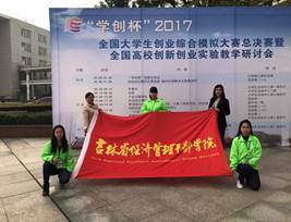 大学生创业综合模拟大赛分为校内选拔赛、省赛、全国总决赛。省赛由吉林省大学生创业综合模拟大赛组委会主办,吉林大学承办,杭州贝腾科技有限公司提供技术支持。在会计学院领导的大力支持及高度重视下,由会计学院王宏、刘骅指导的团队于2017年6月16日在省赛中脱颖而出以吉林省唯一高职院校身份进入全国总决赛。此项大赛省赛有全国500所高校千余支团队参与,共万余人参赛,最终有全国104所院校的104支代表队进入全国总决赛,10月21日,由高等学校国家级实验教学示范中心联席会主办的“学创杯”2017全国大学生创业综合模拟大赛总决赛暨全国高校创新创业实验教学研讨会在湖北经济学院隆重举行。