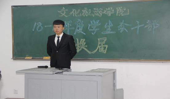最后党总支书记田小龙对新一届团委、学生会成员寄予厚望,希望学生干部能以饱满的热情和主人翁精神,集思广益,明确新任务,开创新局面,创造新业绩,共同建设更加美好的文化旅游学院!