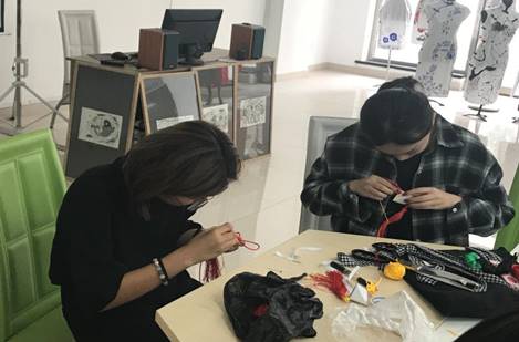 学生们在认真制作中国结香包