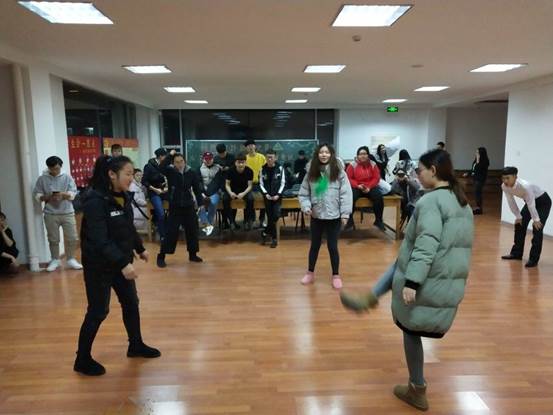 此次活动为团队赛,每3个人分为一个小组,每个小组轮流踢,两分钟的计时时间,每组踢得最多的,最后剩下的三组进入决赛,被淘汰的同学仍是下次例会表演节目。