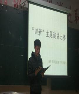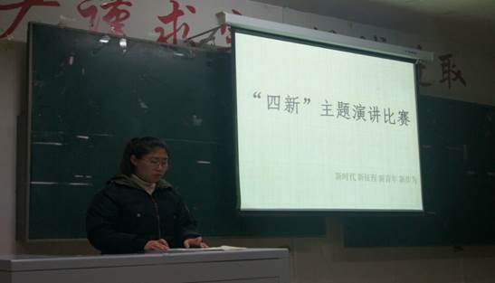 首先,由主持人黄露介绍本次“四新”演讲比赛相关规则和要求。接着,演讲比赛正式开始。选手们准备充分,她们精神饱满、声情并茂,自然大方、饱含深情、直抒胸臆,用充沛的感情把观众带进了一个知识的海洋。其中三号选手的演讲用饱含深情的语调抒发了对党的十九大,挚爱与赞美之情,四号选手的演讲紧扣主题,准确地把握十九大的基本精神,纵观全局,表达了对十九大的感想,五号选手的演讲《向共产党致敬》用深情的演讲,表达了对党真挚的感谢与美好的祝福,八号选手带来的《四新》,歌颂了党的伟大成就,党在建设方面的丰功伟绩。 现场气氛热烈,台上各位选手以恰切的表情达意和自然大方的演讲姿态赢得了阵阵掌声。