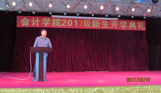 9月7日下午13点,会计学院2017级新生开学典礼在前进校区6楼礼堂正式举行。出席本次大会的有会计学院全体领导、团总支书记、新生辅导员及各教研室主任、教师代表、在校生代表、新生代表。大会由会计学院党总支副书记南洪吉主持。