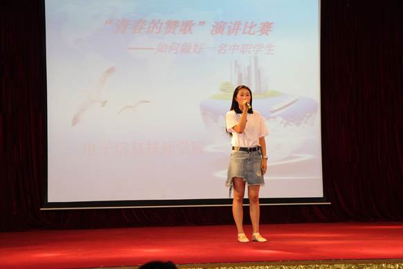 演讲比赛前,刘书记做了重要讲话,以她的全新理念对中职学生工作提出了重要部署和对学生的殷切期望和鼓励。演讲比赛通过个人报名,班级支持的方式展开,评选出15名同学参加,比赛中,同学们的演讲声情并茂,激情四射,讲出了中职生的自信,讲出了中职生的人生目标,感染了在场的所有同学,经过两个小时的时间,在动情的诗朗诵和热烈的掌声中圆满结束,本次比赛评出一等奖一名,二等奖两名,三等奖三名。
