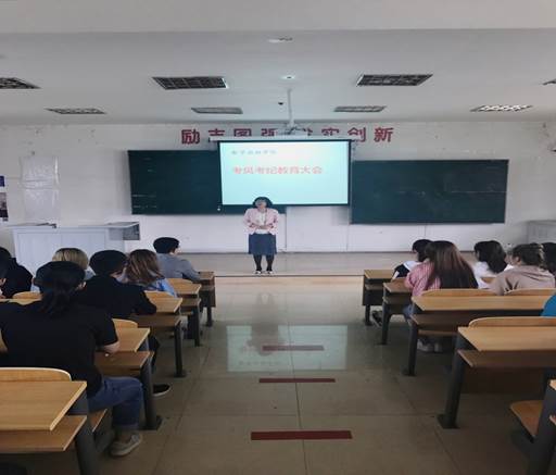 为进一步严肃考试纪律,树立诚信考试风气,数字出版学院于6月9日中午在院部第一教学楼205教室开展“考风考纪教育大会”,分院院长刘庆红、党总支书记孙成雨、团总支书记赵馨彤及大一全体学生参加会议。会场秩序井然,同学们以非常严肃认真的态度接受了考风考纪教育与诚信做人的教育。