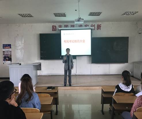 之后,分院党总支书记孙成雨就此次期末考试提出了三点要求和希望:一是要求同学们认真备考,全力以赴地投入到期末考试复习中去;二是本着“诚信考试光荣,违纪作弊可耻”的原则,希望同学们诚信考试,遵守考试纪律,公平竞争。他结合2015年新颁布的《刑九》关于考试方面的法律法规以及学院学生管理制度相关规定,生动的给同学们算了一笔违纪账,启发大家在利益和道德两个维度进行正反两方面的思考,引起同学共鸣;三是要求同学们尊重任课教师一学期的辛苦劳动,尊重监考教师维持考场秩序的权利,预祝同学们在考试中能取得优异的成绩,度过一个开心快乐的假期。
