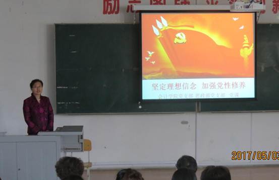 按照党员学习活动日安排,会计学院党支部和思政教学部党支部及学生入党积极分子、各班团支部书记,于5月3日下午在院部A教205阶梯教室以《坚定理想信念 加强党性修养》为主题,上了一堂意义深刻的党课。党课由思政教学部主任刘颖教授主讲,会计学院党总支副书记南洪吉主持。