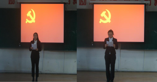 首先,预备党员代表苏志冰发言,她说:感谢党组织的悉心栽培,以及每一位老师和同学们的关怀。入党宣誓对于刚刚加入党组织的新同志来说,是激动人心的,在这个庄严的宣誓仪式上,心灵接受了一次神圣的洗礼。在今后的学习和工作中,将会一名党员标准严格要求自己,在不断的学习中,更加成熟起来,为社会主义建设贡献自己的一份力量。