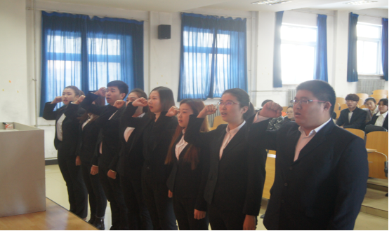 12月15日中午,会计学院在院部205多媒体教室,举行了庄严而隆重的学生预备党员入党宣誓仪式。出席本次仪式的有党总支书记付杰、党总支副书记南洪吉、胡馨元老师、学生预备党员、入党积极分子和大一学生代表。仪式由团总支书记魏爽主持。会议第一项,魏爽老师领誓,八名学生预备党员庄严的举起右拳向党旗宣誓,随后,预备党员代表及入党积极分子一一作了发言。