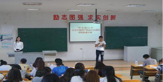为纪念中国共产党成立95周年,歌颂祖国、歌颂党,歌颂革命老前辈的丰功伟绩。会计学院成“仁”协会口才与礼仪社团,于6月23日下午在院部A教205室举办了“党在我心中”为主题的诗歌朗诵大赛。参加本次大赛的有会计学院党总支书记、全体辅导员和口才与礼仪社团全体成员。