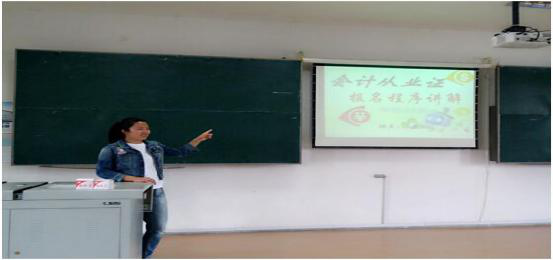 6月1日中午,会计学院2015级刘超、胡馨元老师在院部A教305教室,组织一场会计从业资格证报名程序讲座。参加本次讲座有,准备6月份应考的学生。