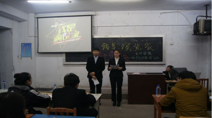 为了培养同学们的逻辑思维能力,增强同学们的创新能力和思考能力,加强相互间的思想交流。 12月 9日,会计学院学生会外联部组织15级部分学生,在和平校区教学楼317室,举行一场《我是演说家》活动,现场活动气氛活跃,活动圆满成功。
