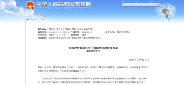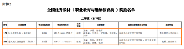 2021年10月12日国家教材委员会发布《关于首届全国教材建设奖奖励的决定》,授予10种教材“全国优秀教材特等奖”,200种教材“全国优秀教材一等奖”,789种教材“全国优秀教材二等奖”,99个集体“全国教材建设先进集体”称号,200名同志“全国教材建设先进个人”称号。经省教育厅、教育部逐级评审,我校共有2种教材荣获全国优秀教材(职业教育与继续教育类)二等奖。具体名单如下: