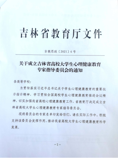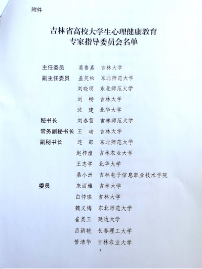我校教师当选”吉林省高校心理健康教育工作专家指导委员会”委员