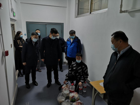 党委副书记单魁贤在隔离区外了解学生生活保障情况