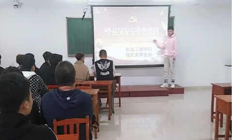 为了增强全民国家安全意识,贯彻落实习近平总书记提出的国家安全观。我院于2019年4月15日在教学楼A404开展“全民国家安全教育日”主题会议。本次会议由机电工程学院团总支学生会举办,学生会主席陈曦主持,各班班级干部参加本次会议。