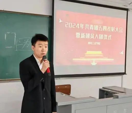 为表彰先进,2024年5月18日中午,机电工程学院团总支于高新校区举行2024年共青团五四表彰大会暨新团员入团仪式。机电工程学院领导班子及辅导员老师和学生团员代表们出席了此次表彰大会。