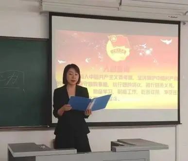 接下来,新团员进行了入团宣誓,大家举起右拳,庄严宣誓:我志愿加入中国共产主义青年团,坚决拥护中国共产党的领导,遵守团的章程,执行团的决议,履行团员义务,严守团的纪律,勤奋学习,积极工作,吃苦在前,享受在后,为共产主义事业而奋斗。铿锵有力的声音表达了同学们对共青团的无限向往和为团组织增光添彩的豪迈激情。