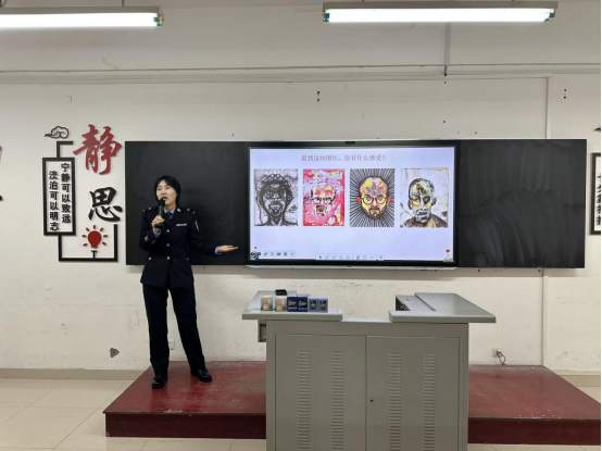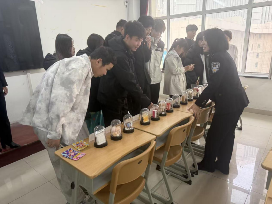 随后,王佳警长围绕“拒绝毒品,珍爱生命”主题开展专题宣讲。她通过展示仿真毒品、列举数据等方式,深入浅出地介绍了毒品的种类、危害,特别是新型毒品的隐蔽性和欺骗性,深刻剖析了毒品对个人、家庭和社会造成的巨大伤害,呼吁同学们树立正确的人生观、价值观,坚决抵制毒品诱惑,追求健康无毒的美好人生。