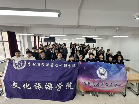 进一步增强2025级新生法治观念与安全防范意识,筑牢安全防线1029下午,文化旅游学院特邀吉林省女子强制隔离戒毒所蔚蓝天使普法宣讲团,在A307、A608教室,为2025级全体新生开展“远离违法误区,守护人生底色”的法治安全教育宣讲活动。党总支书记王磊、团总支书记冯泽奇、2025级新生辅导员王华增与全体新生一同参与本次活动