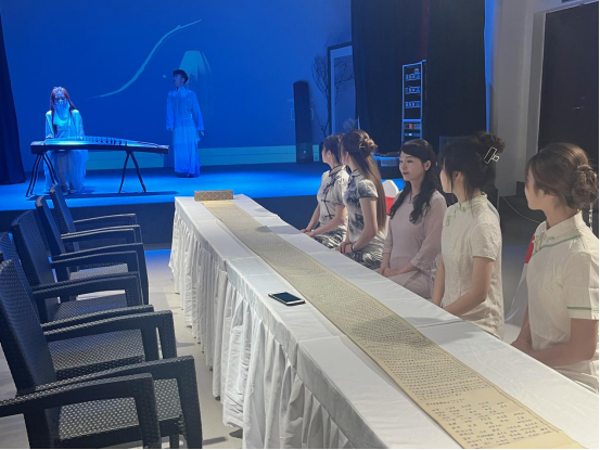 6月7日,文化旅游学院领导委派王锐、冯泽奇、孙迪老师带领同学们来到合作企业光明艺术学校研学,恰逢吉林省省委宣传部领导来到长春市光明艺术学校调研,考察中华优秀传统文化传承与重点文化企业相关工作开展情况。大家共同观赏了古琴曲《幽兰操》,《幽兰操》又名《猗兰操》,最早相传是孔子所作,琴曲似诉似泣,如怨如愤,把孔子的内心世界抒发得淋漓尽致,是一首优美的兰诗,也是一首幽怨悱恻的抒情曲。